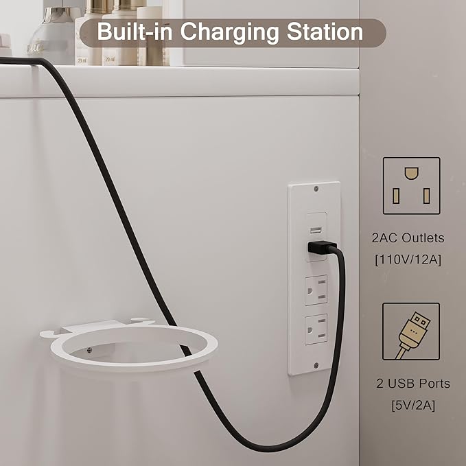 - Side Charging Station and Hair Dryer Stand: When applying makeup, you can easily access the hair dryer and curling iron. The additional USB port allows you to charge mobile phones or other electronic devices at any time. These thoughtful convenience features enhance your comfort and make your life more convenient.