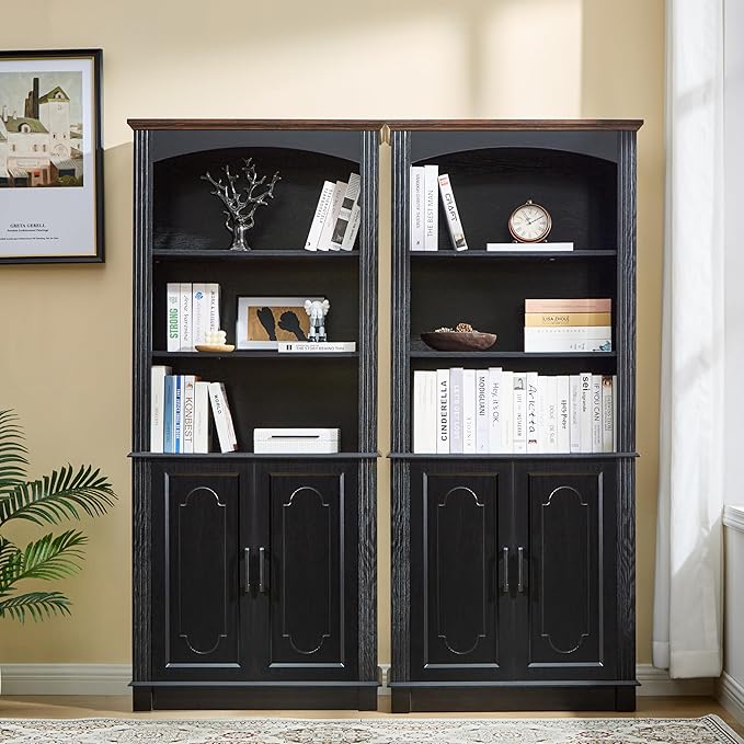 - Durable Modern Wooden Construction — Made from premium engineered wood with waterproof and scratch-resistant finish, this tall bookcase features an elegant arch design, smooth doors, and reinforced shelves. Matches seamlessly with modern book shelves, farmhouse furniture, industrial shelving units, or traditional décor in bedrooms, living rooms, bathrooms, or kitchens