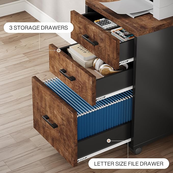 - Space-Saving & Multifunctional Design: With dimensions of 13.8" D × 15.8" W × 25.6" H, this file cabinets for home office features an industrial-style aesthetic paired with three drawers. The office file cabinets maximizes office storage without taking up too much space—perfect for fitting beside a desk or workbench