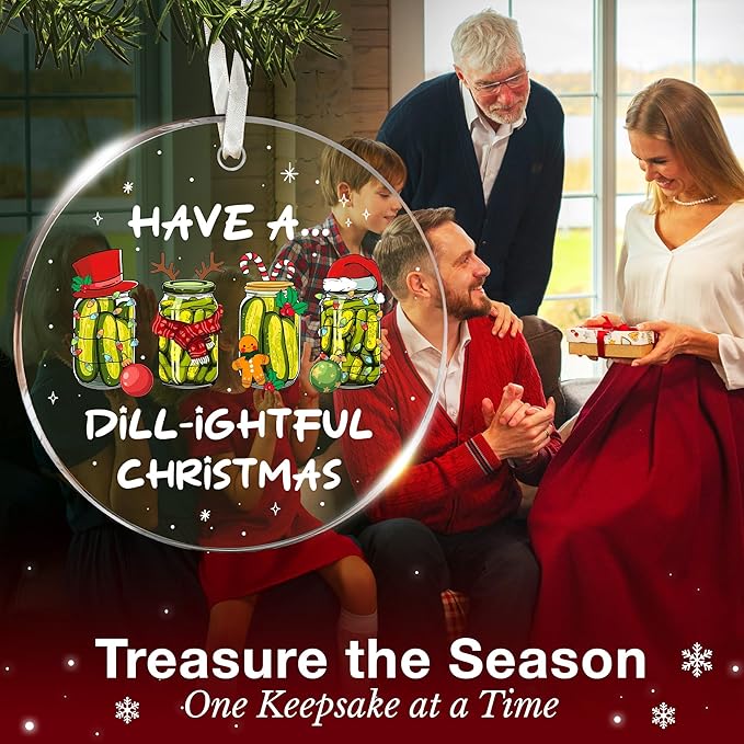 - PREMIUM SHATTERPROOF ACRYLIC CRAFTSMANSHIP: Crafted from lightweight, shatter-resistant acrylic, each pickle christmas ornament shines with exceptional clarity. The vivid print ensures your dill pickle christmas ornament remains a treasured keepsake year after year. Perfect for families, this durable pickle ornament plastic design makes celebrations safe and worry-free.