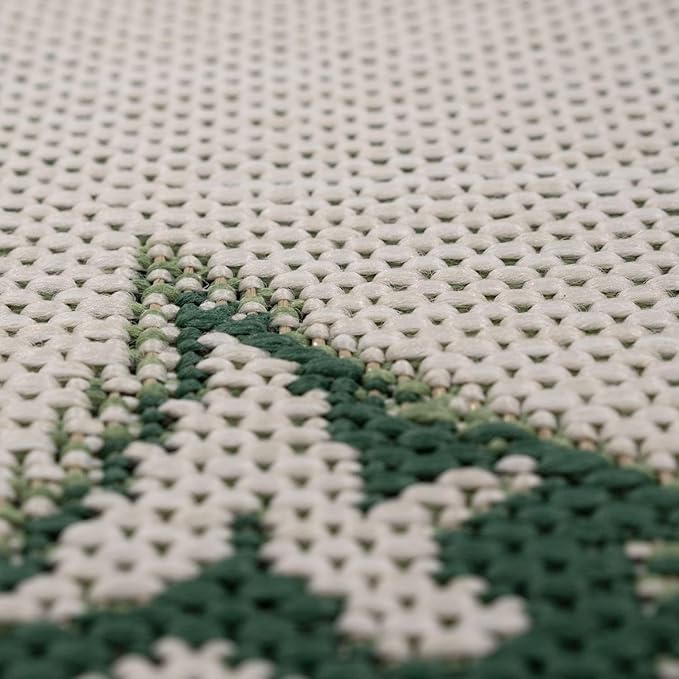Paco Home Tropical Outdoor Rug Jungle Leaves Design for Patio in Green Beige, Size: 7'10" x 11'2"