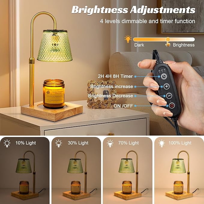 - Dimmable Brightness - Transform your space with perfect lighting! Our candle warmer lamp features a convenient dimmer switch with 4 adjustable brightness levels. Whether you want to unwind after a long day, set a romantic mood for date night, or create a cozy reading nook, you can easily customize the light intensity to suit your needs. Enjoy the joy of personalizing your environment, making every moment feel special.