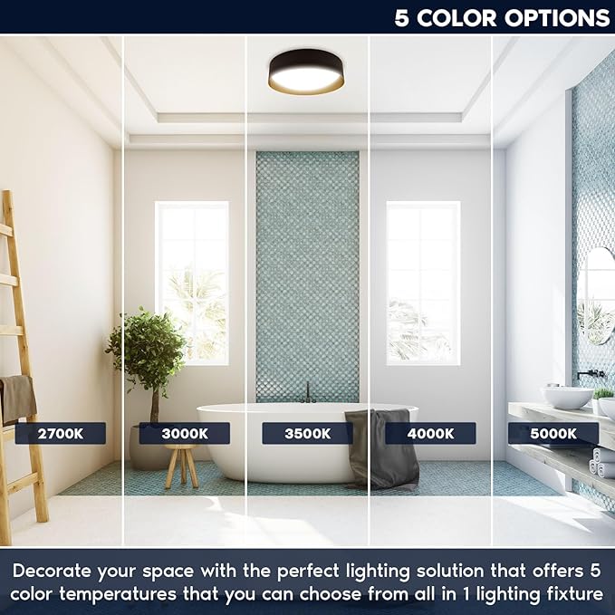 - 5 Color Temperature Options: Our decorative flush mount light fixture, featuring 5 CCT selectable colors 2700K (Warm White), 3000K (Soft White), 3500K (Neutral White), 4000K (Cool White), and 5000K (Daylight). With a beam angle of 100° and CRI 90, this ceiling lights flush mount offers energy-efficient lighting in 2420 lumen light options.