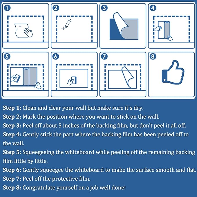 - 【Wide Application】Our whiteboard paper can be glued to any smooth, hard surface, such as plastic, glass, metal or wood. It can be used as a teaching board in the classroom as well as a meeting board in the office. A word of caution: be careful when using delicate surfaces such as wallpaper or painted walls, as the strong adhesive may leave marks when removed.