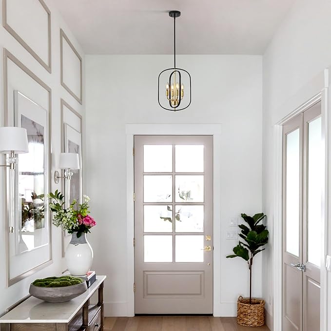 - 【Bulb Requirement】This entryway chandelier features 4 E12 bases that are compatible with various bulb types, such as incandescent, LED, CFL, and halogen bulbs (Bulbs NOT Included). When installed with dimmable bulbs and a compatible dimmer switch (Switch NOT Included), the farmhouse light fixture is dimmable.