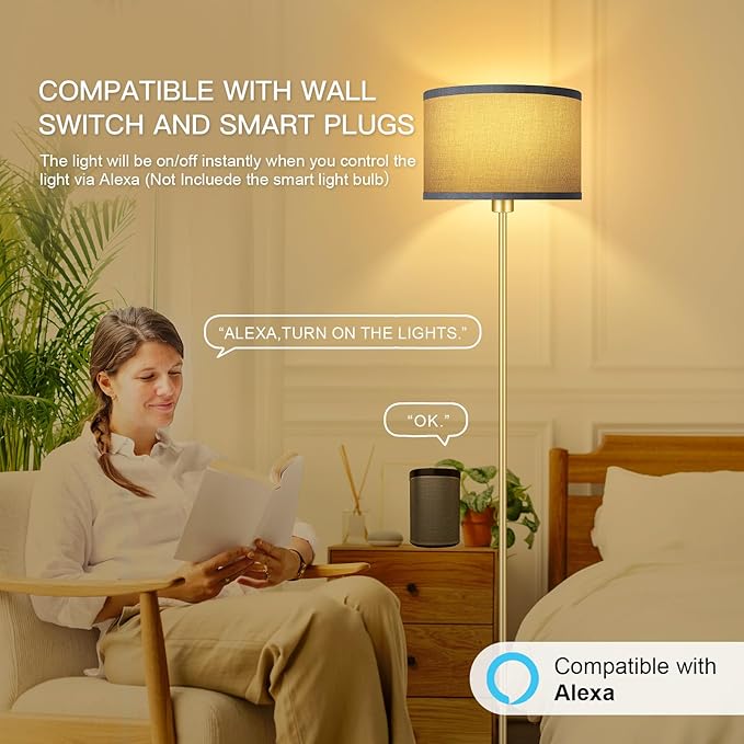- 【Foot Switch and Compatible with smart devices】The LED floor lamp for the bedrooms is controlled by a pedal switch, which is easy to turn on/off when you lay on the sofa or bed, and gives the lamp with shade a clean outlook; To keep path with smart lifestyle, you can plug this standing lamp in the smart device(not included), add it to your home appliances group, and easily controlled it by your phone; intelligent design help you enjoy easier life and home automation