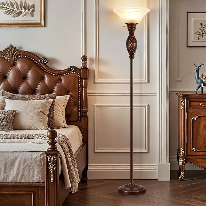 - Dual-Material Elegance: This vintage floor lamp features intricately carved resin for the night light exterior, paired with a sturdy metal pole and base—blending durability with timeless farmhouse floor lamp charm