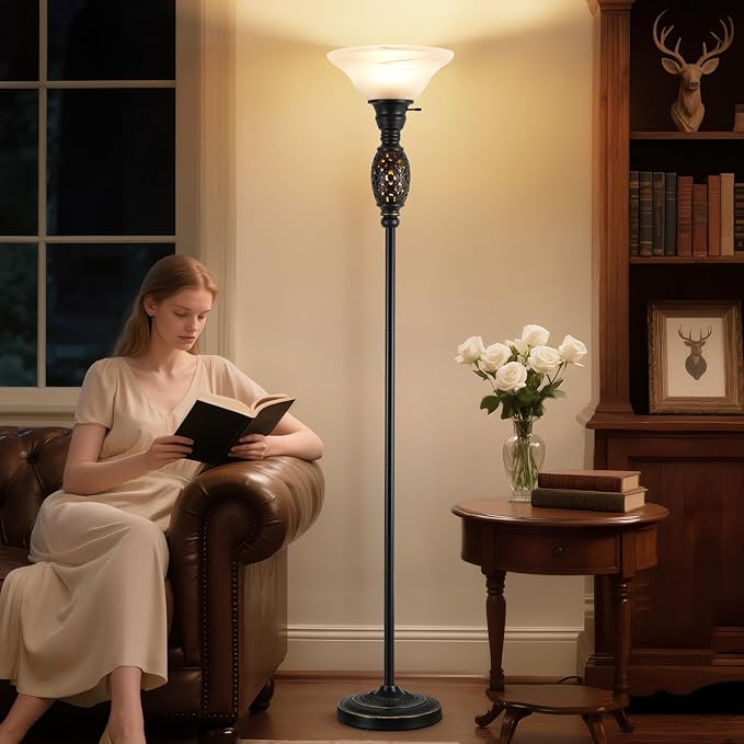 - Dual-Material Elegance: This vintage floor lamp features intricately carved resin for the night light exterior, paired with a sturdy metal pole and base—blending durability with timeless farmhouse floor lamp charm