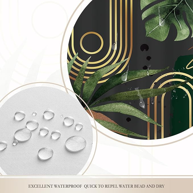 - 【Premium Materials】This dark green gold boho mid century shower curtain is made of 100% environment-friendly polyester fabric, water resistant, quickly dry, odorless, safety and fadeless.