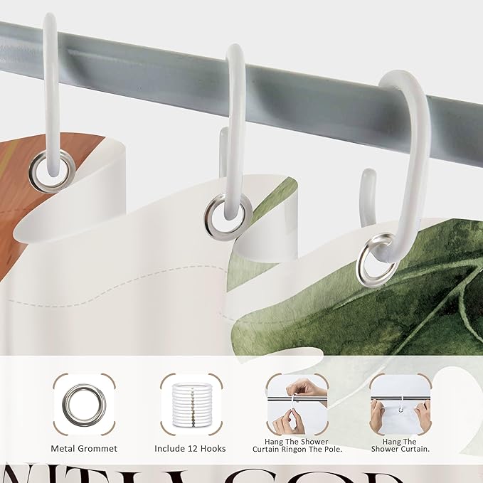 Glawry Boho Bible Verse Shower Curtain Extra Long Inspirational Abstract Scriptures Quotes Palm Leaf Bathroom Mid Century Christian 72Wx78L Inches Bath Accessories Art Home Decor Fabric 12 Pack Hook