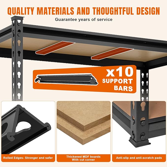 - Safe & Sturdy Rolled Edge Design: Say goodbye to the low quality and easy scratching of single layer post shelves. The boards cut corners and rolled edge design of the metal column is not only thicker and better quality of the column, but also protect your hands from scratches. This thoughtful design makes this garage shelf the best choice whether you use it for yourself or give it to a friend!