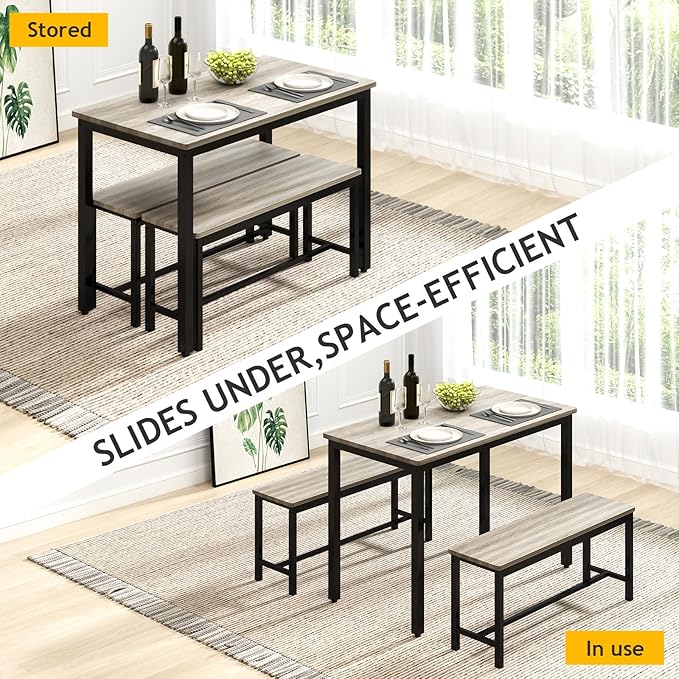 - Compact & Space-Efficient: After meals, conveniently slide the benches underneath the table, making it ideal for compact kitchens or apartments with limited space.