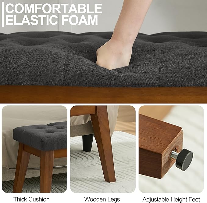 - Comfortable Seating with Thick Premium Cushioning: Designed with 4.1-inch high-density foam,this bed bench delivers exceptional comfort and support.Its thick cushion provides a plush,relaxing seating experience, making it perfect for bedrooms,entryways,or living spaces.