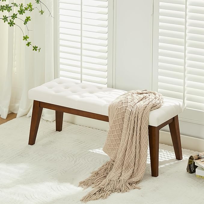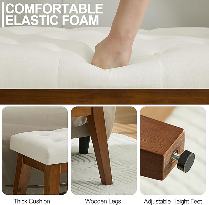 - Comfortable Seating with Thick Premium Cushioning: Designed with 4.1-inch high-density foam,this bed bench delivers exceptional comfort and support.Its thick cushion provides a plush,relaxing seating experience, making it perfect for bedrooms,entryways,or living spaces.