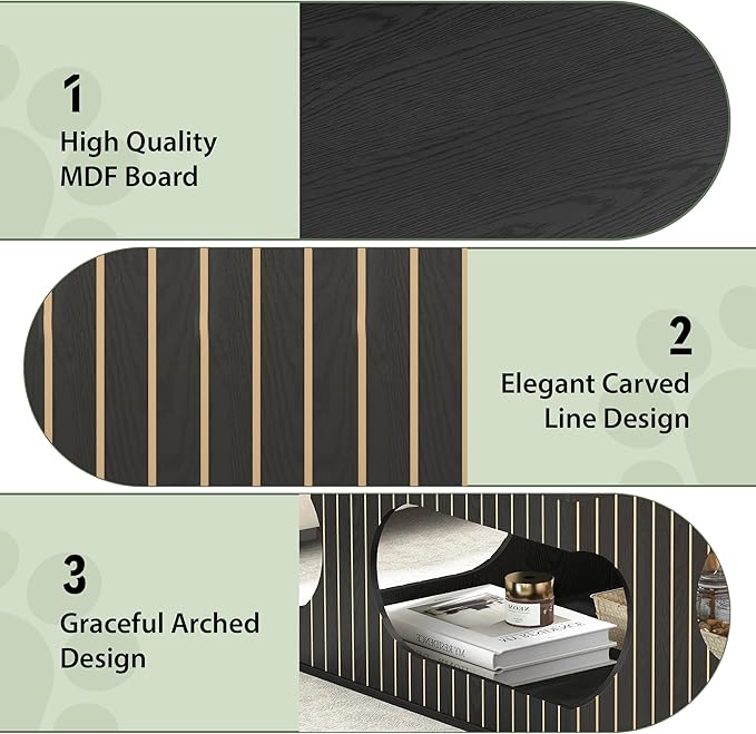 - 【Unique Arched Design with Pet-Friendly Touch】Each side features a sculpted arch that adds visual depth and airy elegance. The open bottom is even suitable as a cozy cat cave or pet resting nook, blending style and multi-functionality into one centerpiece.