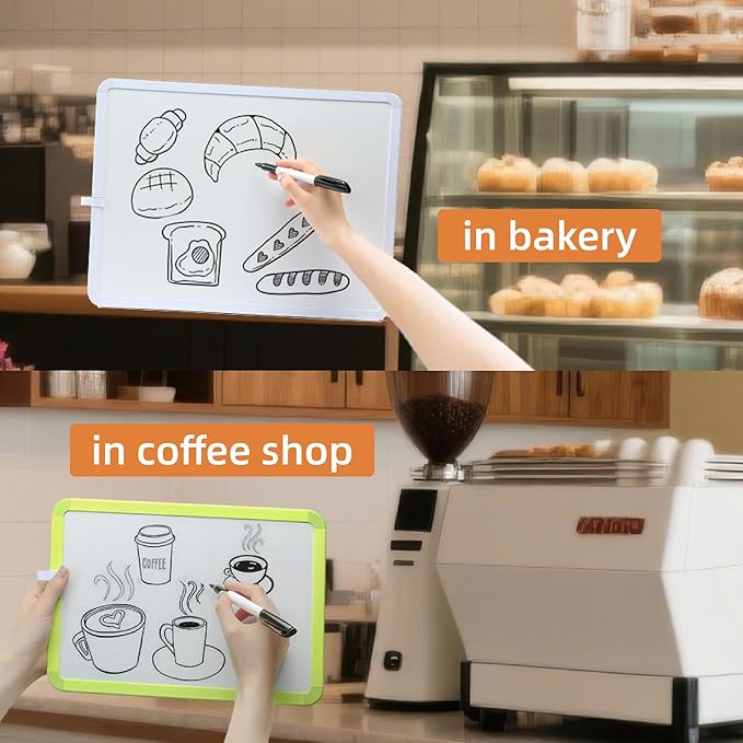- 1. Double sided large-sized writing, clear and efficient: A 12 * 16 inch white framed whiteboard that can be easily erased on both sides, providing a more spacious writing space, suitable for conference presentations, course teaching, project planning or family scheduling, and presenting content more neatly and intuitively.