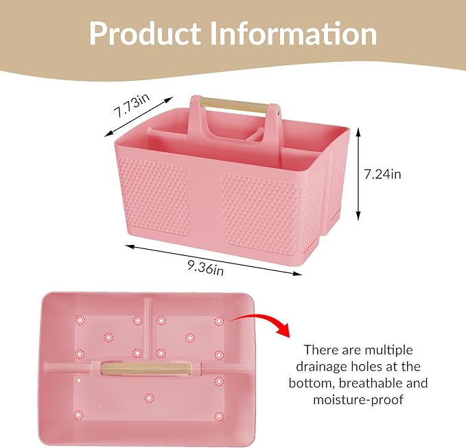 Shower Caddy Portable and Cleaning Caddy Organizer for Bathroom, Kitchen, Toiletries Storage ,Caddy organizer with handle, Rust-Resistant, Durable Material (Pink, 9.36" L×7.73" W×7.24" H)