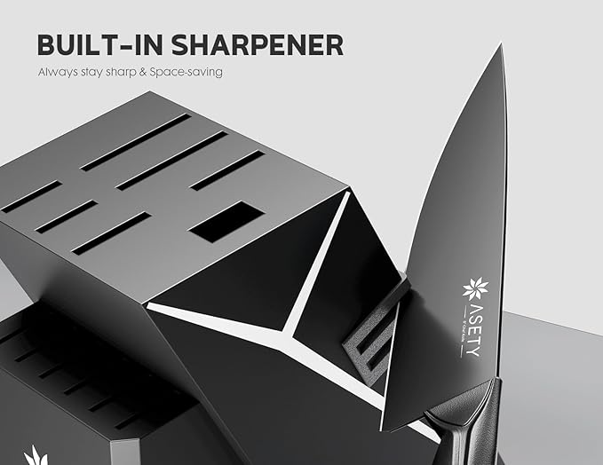 - Always Sharp, Always Clean: Designed for convenience, this kitchen knife set is dishwasher safe for quick, hassle-free cleaning. The sturdy block with built-in sharpener keeps your knives in top condition. Sharp. Clean. Ready!