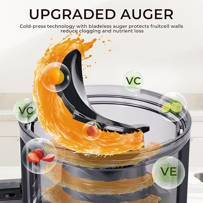 Masticating Juicer with 250W DC Motor, 5.4" Wide Feed Chute, Slow Cold Press Juice Extractor for Whole Fruits & Vegetables, High Juice Yield, DC-Black