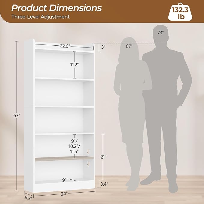 - Two Adjustable Shelves: Customize the second and fifth shelves to suit your needs—from tall novels, storage bins, to a lush trailing Hoya. This vertical bookcase complements a reading corner or any small space, bringing a personalized, thoughtful feel to your home