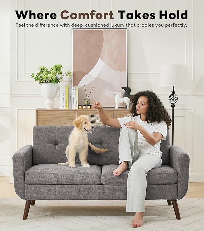 - TIMELESS APPEAL: Stylish tufted linen upholstery with a mid-century low-profile design brightens your whole home with modern craftsmanship and classic aesthetics. The small loveseat provides stylish and functional furniture for your apartment, adding more features to your home while decorating the room.