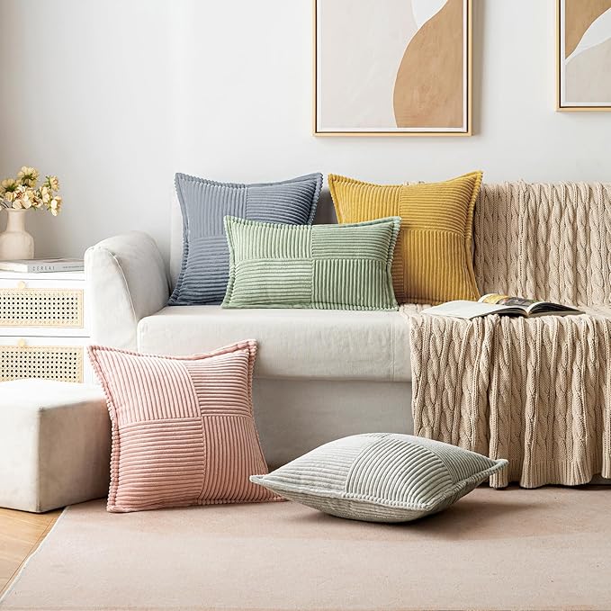 - 【Unique Design】 The corduroy stripes are spliced in different directions in a unique design. The artful arrangement creates an eye - catching visual effect, making them a perfect decorative accent for your couch or bed.