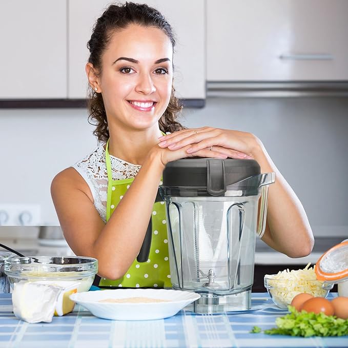 - 【SAFE MATERIAL】The blades are made of hardened stainless steel, which offers better mixing performance and a longer service life.This replacement pitcher for vitamix is made of the safest BPA-free materials and lids made of rubber-like material, resilience, durability, and are BPA-free