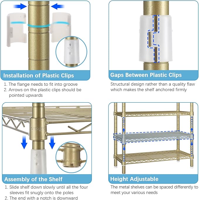 VIPEK V7 Clothes Rack Heavy Duty Max Load 670lbs, Garment Rack with 5 Tiers Adjustable Shelves Portable Closet Metal Sturdy Wardrobe Storage System for Walk-in Closet, Bedroom, Small Space (Gold)