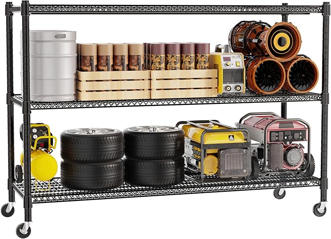 - NO TOOLS ASSEMBLY: Super easily to install and enjoy fun of DIY,the height of each shelf is adjustable depending on your needs.The garage shelves have two wheels equipped with fixed locks that can be fixed or moved at any time.