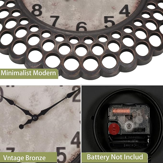 - Vintage Retro Design: This 16 inch round wall clock exudes timeless charm with its vintage vintage retro design, seamlessly blending into any decor style, from classic to modern
