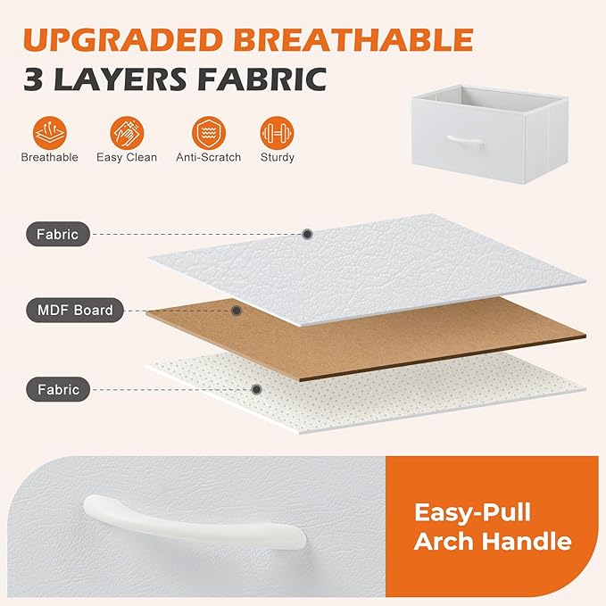 - Premium Build: Cationic fabric fronts meet high-grade, breathable non-woven fiber on every side—odor-free, colorfast and safe for babies, teens and adults alike. Glide-open drawers slide shut with one finger, while the wipe-clean surface needs only a damp cloth and a quick air-dry to look brand new.