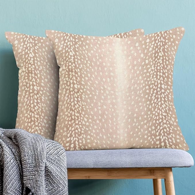 Antelope Pillow Covers 20 x 20 Inch Pack of 2, Animal Skin Print Decorative Throw Pillow Cases Outdoor Linen Farmhouse Neutral Fawn Cushion Cover for Bedroom Home Sofa Decor