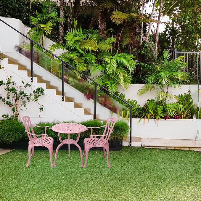 3-Piece Cast Aluminum Patio Bistro Set, Outdoor Rust-Resistant Furniture with 2 Chairs and Table (Pink)