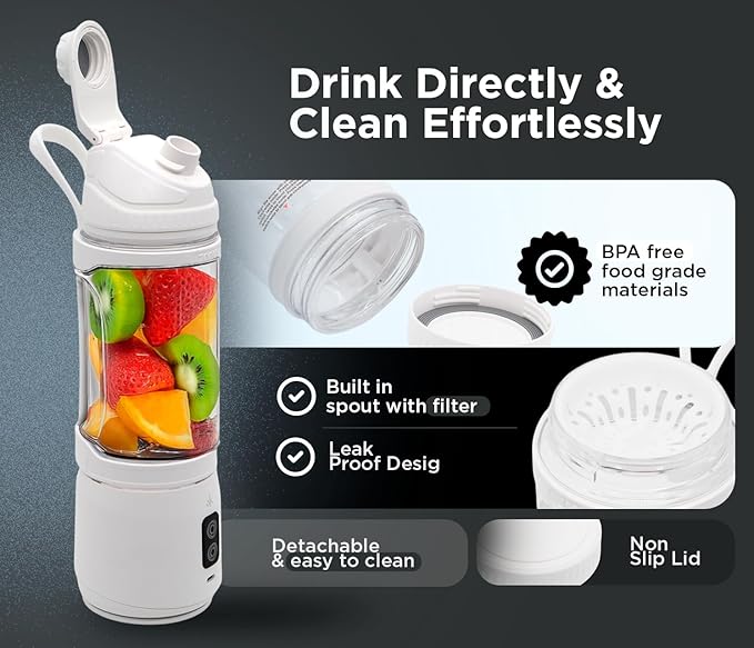 - Convenient & Easy to Clean: The detachable components and self-cleaning feature make maintenance simple. The secure lid with a direct-drink spout and removable filter enhances your experience with this portable smoothie blender.
