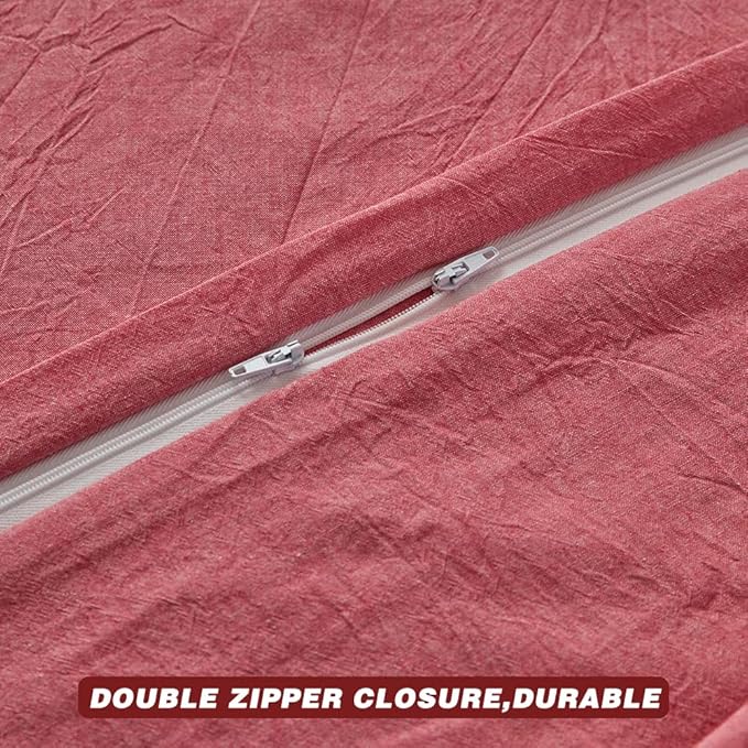 FACE TWO FACE Bedding Duvet Cover Set100% Washed Cotton Duvet Cover Linen Like Textured Breathable Durable Soft Comfy (King, Red)