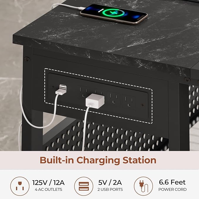 - 【Built-in Charging Station】Our home office Desk includes 4-outlet & 2 USB ports to provide power for up to 6 devices simultaneously. Power outlet allows you to charge mobile devices such as cell phones, tablets, printers, etc.Tabletop and shelves made of FSC-certified wood