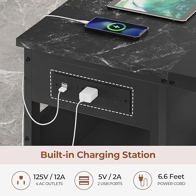 - 【Built-in Charging Station】Our home office Desk includes 4-outlet & 2 USB ports to provide power for up to 6 devices simultaneously. Power outlet allows you to charge mobile devices such as cell phones, tablets, printers, etc.