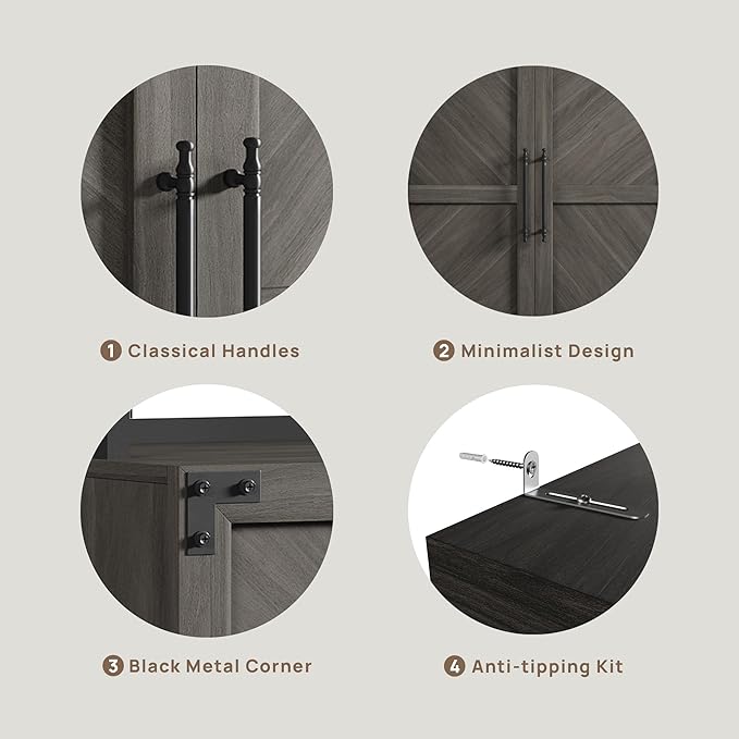 - Sturdy & Long-Lasting Build - Made with FSC-certified engineered wood and heavy-duty metal, this bookcase ensures durability and stability. The soft-close hinges and sleek handles add a refined touch while making daily use smooth and quiet