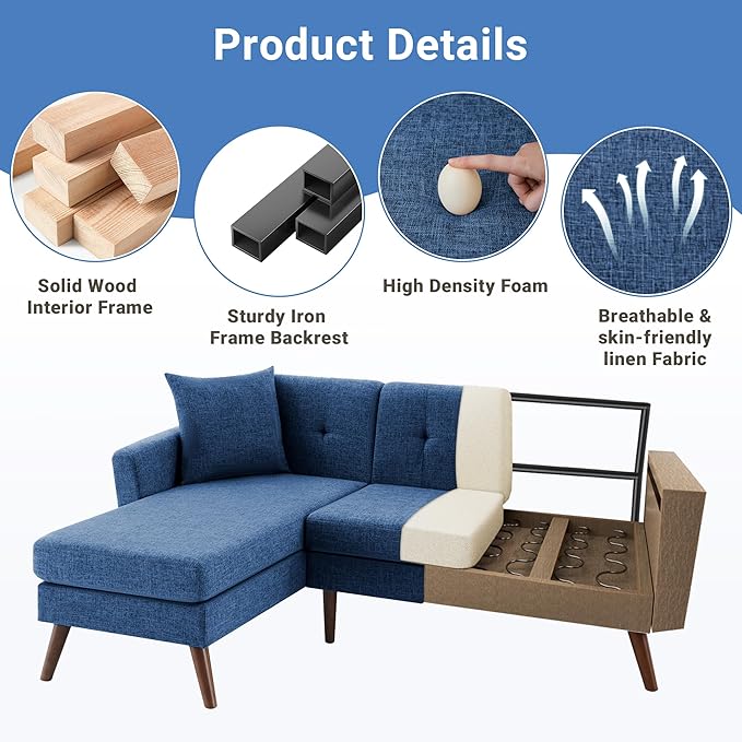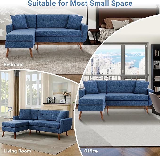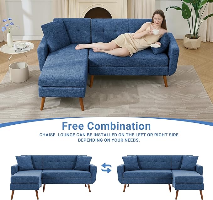 - Modern Mid-century: Features elegant mid-century modern curves, button tufting, & two included fluffy pillows. This L-shaped sofa brightens rooms with classic aesthetics and modern craftsmanship.