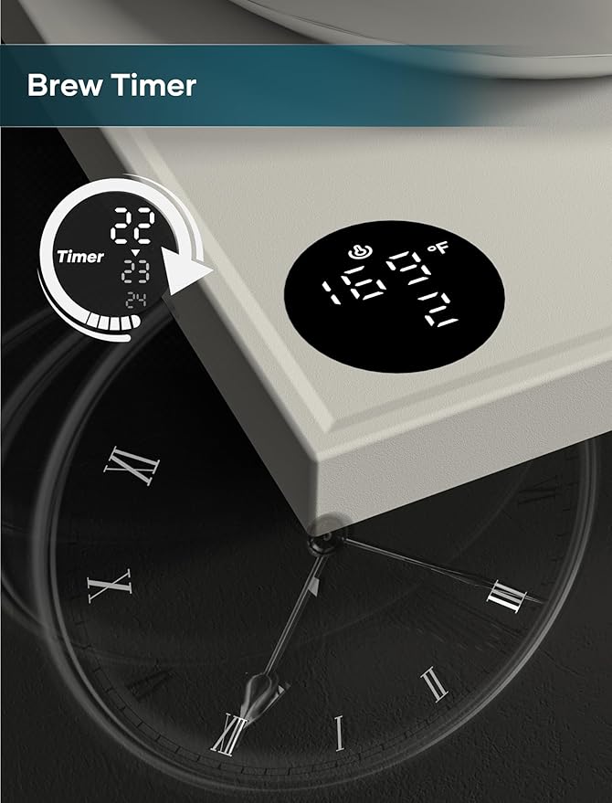• Built-in Brew Stopwatch - Track and control your pour-over timing on the digital display. Start with one touch and perfect your coffee ritual with café-level precision.