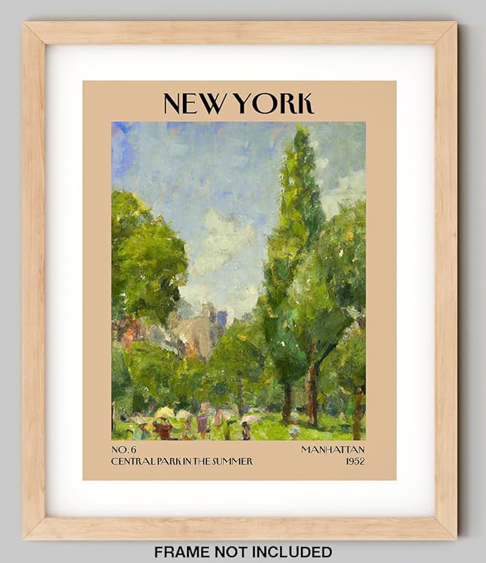 Retro Vintage New York Wall Art Print - 11x14 Unframed Poster - New York City Souvenirs, Cute Trendy Colorful Wall Decor (Central Park in the Summer, 11x14")