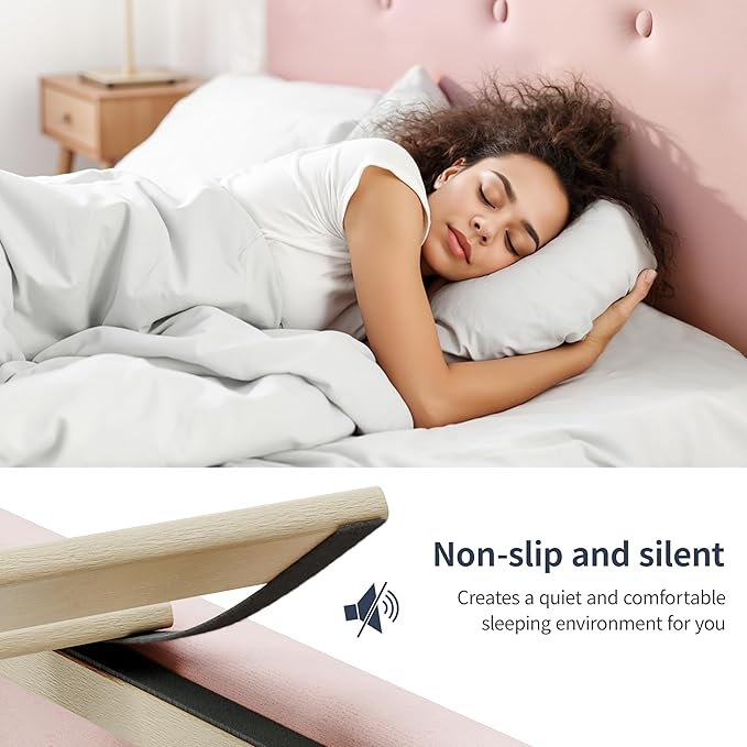 - 【Elegant Upholstered Headboard in 3 Colors】 Designed with a modern curved silhouette and soft fabric finish, this bed frame adds a stylish touch to any bedroom. Available in three chic colors—White for a clean minimalist vibe, Pink for a cute feminine flair, and Dark Grey for a sleek, modern look—perfectly suited for adult or teen bedrooms.