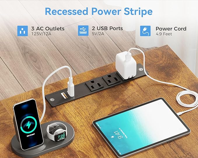 - 【Integrated Built-in Charging Station】Equipped with three AC outlets and two USB ports, this gaming desk delivers seamless power management for laptops, consoles, and devices. Safely eliminate cable chaos during work or at play while keeping electronics within effortless reach.