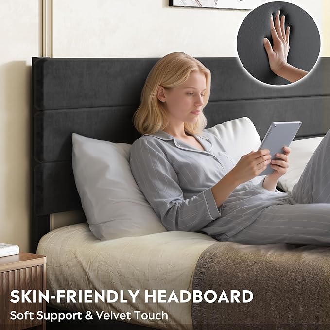 - 【Premium Upholstered Design】 Upholstered in premium velvet fabric with high-density foam padding for a soft, comfortable feel; tufted headboard design adds a touch of elegance to any bedroom. Modern and versatile design fits various home styles.