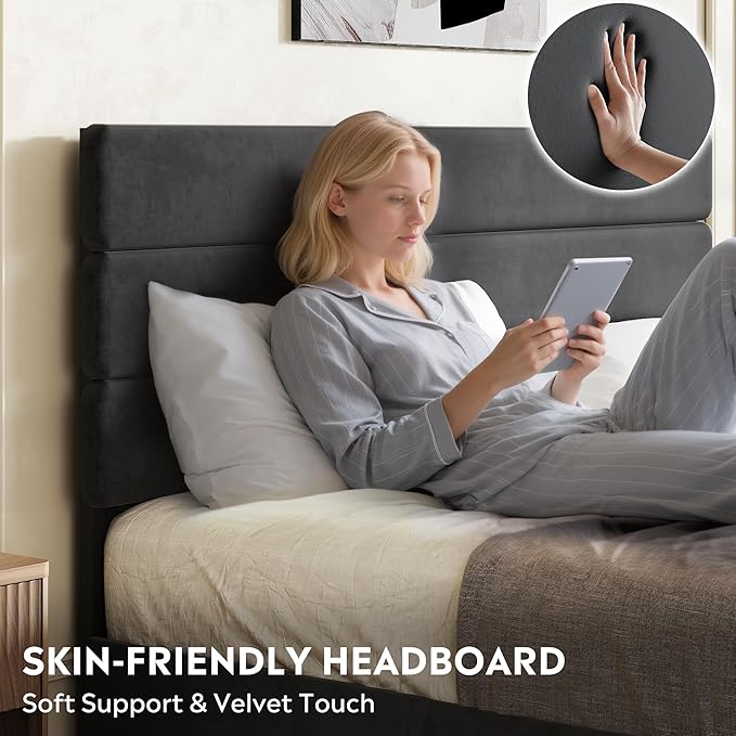 - 【Premium Upholstered Design】 Upholstered in premium velvet fabric with high-density foam padding for a soft, comfortable feel; tufted headboard design adds a touch of elegance to any bedroom. Modern and versatile design fits various home styles.