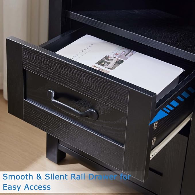 - 【Maximized Storage】 Large drawers for essentials + open shelf for books/decor Ideal dorm nightstand & storage cabinet with drawers