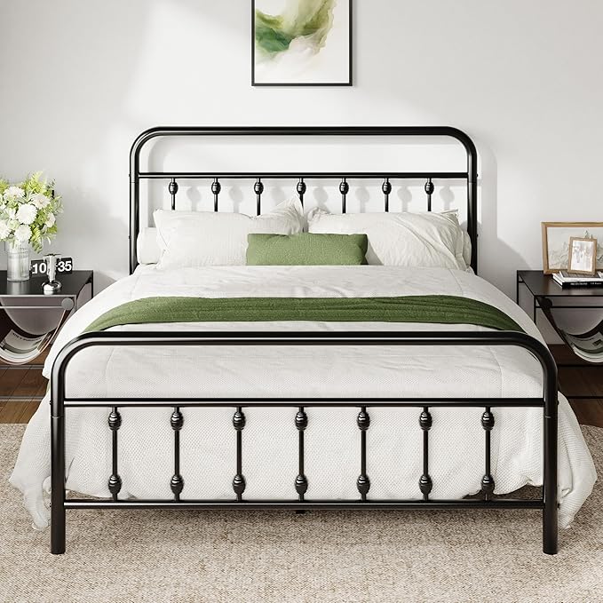 Allewie Queen Size Metal Platform Bed Frame with Victorian Style Iron-Art Headboard and Footboard, Easy Assembly, Under Bed Storage, No Box Spring Required, Black