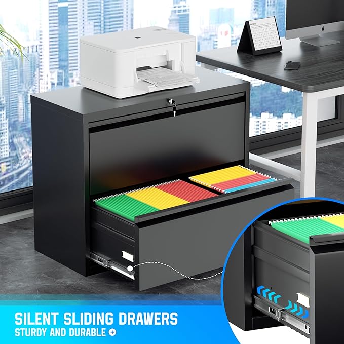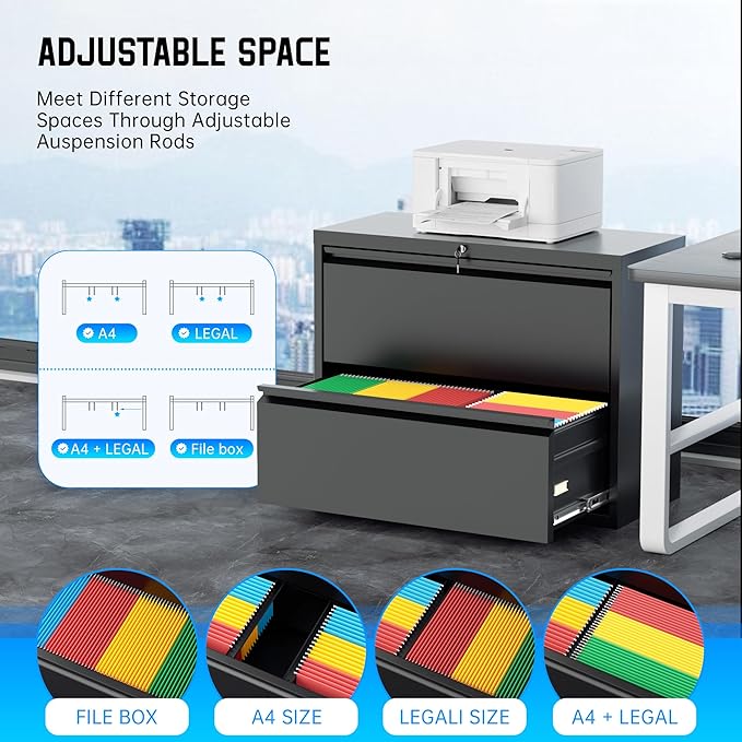 - ▶[STRONG STORAGE]: The maximum load of wide space 2 drawer lateral file cabinet is around 220 LBS. Besides, the large surface will place files, and also, the deep drawers with side-to-side hanging rails will accommodate legal, A4, and F4 size letter folders in order.