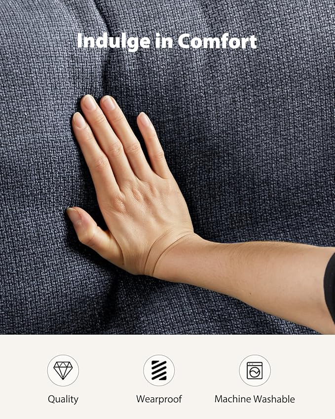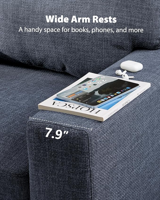Pipishell 3 Seater Sofa Couch, Sofas for Living Room with Deep Seats and Wide Armrests, 89" Modern Linen Sofa Supportive with Thickened Cushion, Cotton-Linen Couches, Removable & Washable Covers, Blue