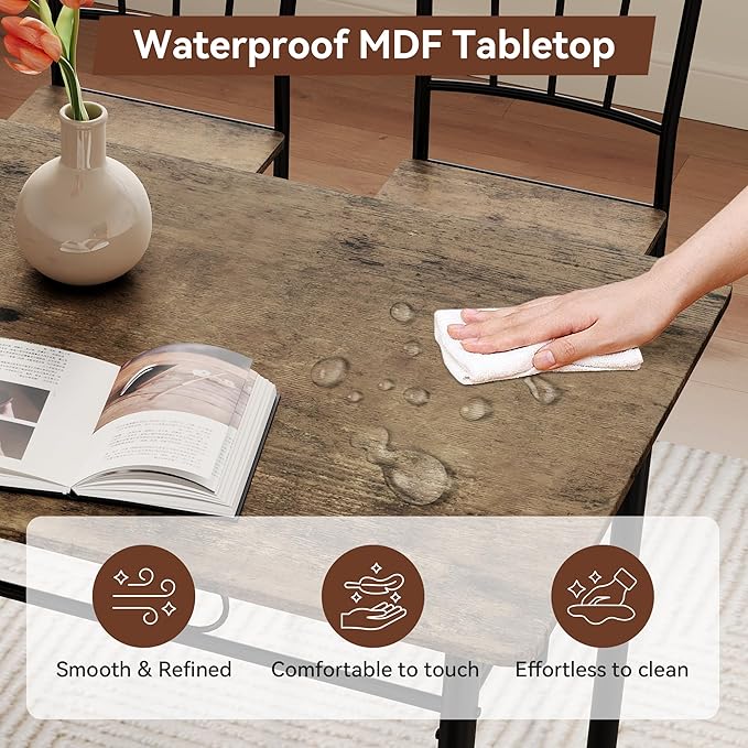 Kitchen Dining Table Set for 4, 5-Piece Kitchen Table Set,Dining Room Table Sets,Rectangular Kitchen Table Set with 4 Chairs for Small Space, Dinette,Apartment, Rustic Brown